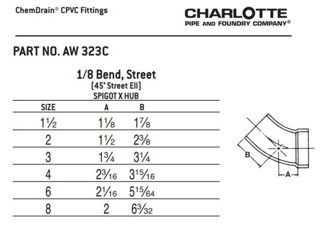 ChemDrain® CPVC pipe and fittings are for chemical waste drain systems and offers a safe, durable, and economical alternative for institutional, academic and commercial laboratories. ChemDrain is designed for chemical waste drainage where temperatures will not exceed 220° F. Chem Drain has excellent resistance to acids, bases, salts and a wide range of organic media and is joined using a one-step solvent cement. It is easy to install and handle. Charlotte Pipe products are manufactured in the USA.
