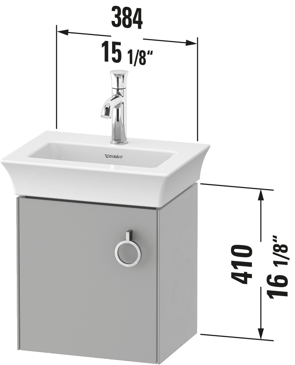 Duravit White Tulip 15 1/8" Wall Mount One Door Single Vanity Cabinet in High Gloss Graphite, Sink Sold Separately