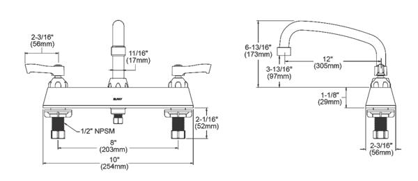 Elkay 8" Centerset with Exposed Deck Faucet with 12" Arc Tube Spout 2" Lever Handles Chrome