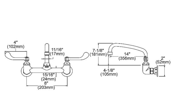 Elkay Foodservice 8" Centerset Wall Mount Faucet with 14" Arc Tube Spout 4" Wristblade Handles 1/2" Offset Inlets